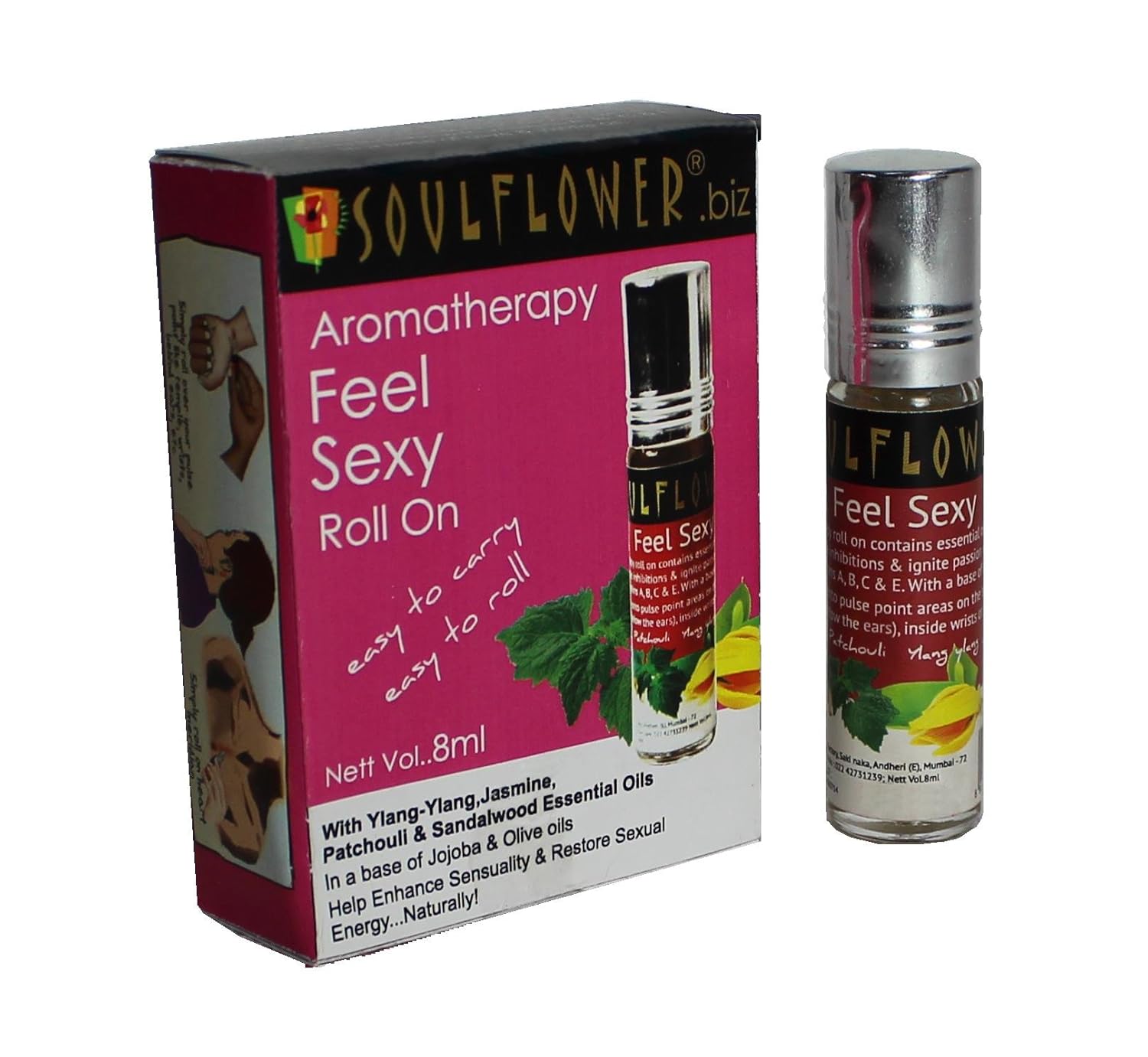 - A unique synergy blend of pure and exotic essential oils reputed to enhance sensuality and restore sexual energy including Jasmine, Sandalwood, Ylang Ylang and Patchouli. The scent of Ylang ylang oil is deeply relaxing, exotic, and sensuous.